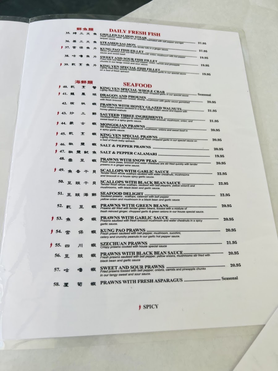 King Yen Menu